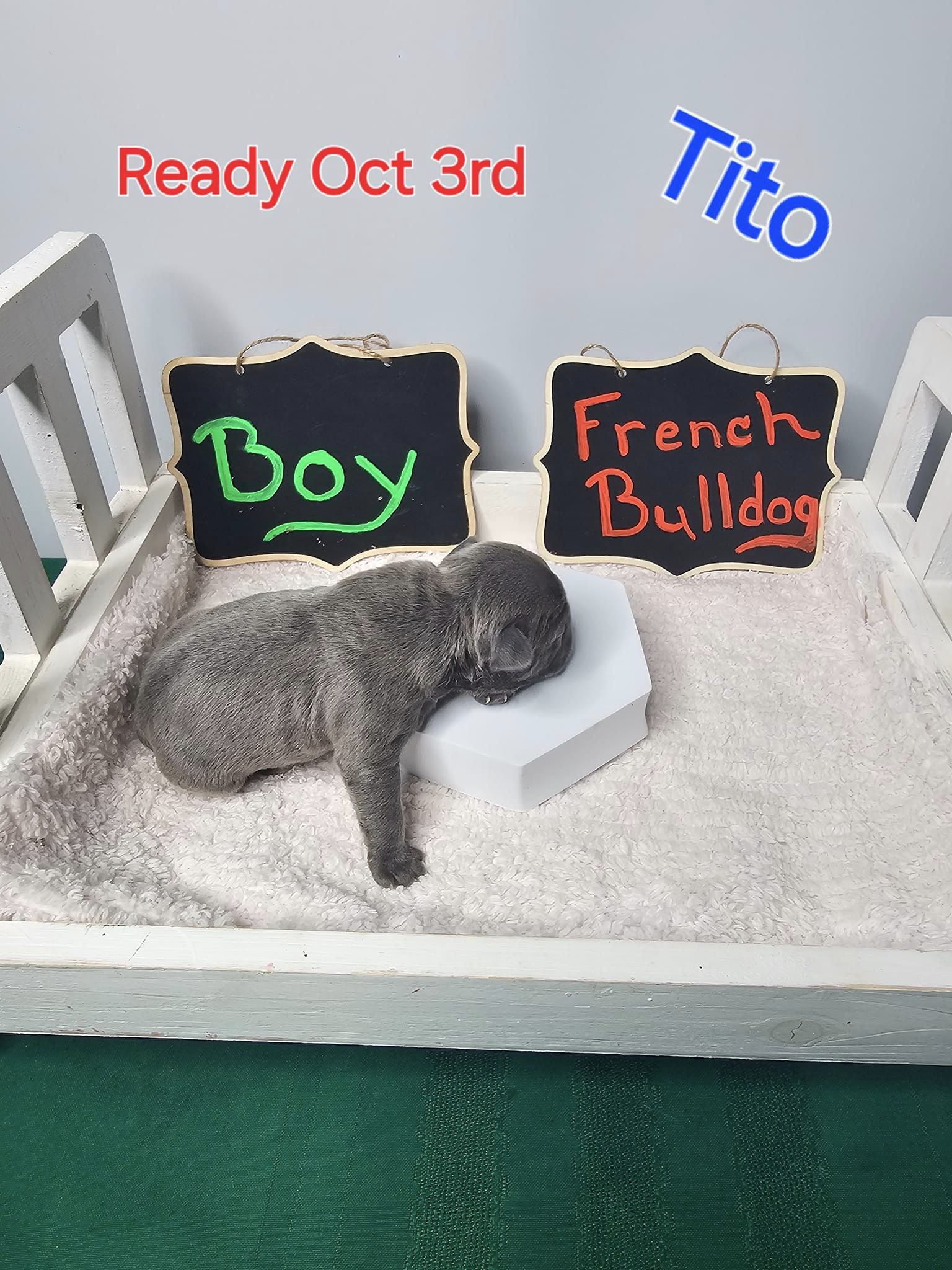 Meet Tito, the adorable French Bulldog puppy who’s always ready to brighten your day! With his playful personality, irresistible charm, and those signature bat ears, Tito is the perfect little guy to add some joy to your life. Whether he’s chasing after toys or curling up for a nap, Tito’s affectionate and fun-loving nature makes him an ideal companion.